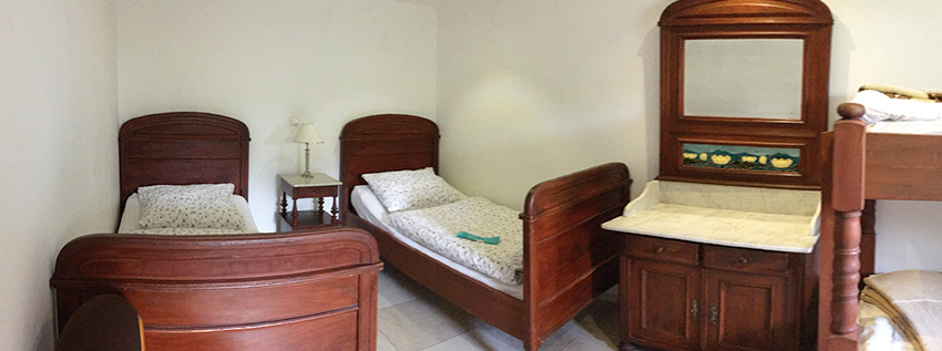 Der Schlafbereich bietet Platz für vier Personen, davon zwei in einem Doppelstockbett. Bei Bedarf kann auch ein Babybett zur Verfügung gestellt werden.